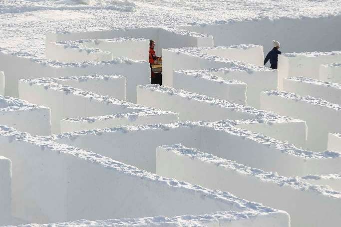 Winnipeg's winter snow maze, located near the town of St. Adolphe 15 km south of Winnipeg, is officially the World's Largest Snow Maze according to the Guinness World Records, covering 2,789 square feet and at 4,200 feet long.