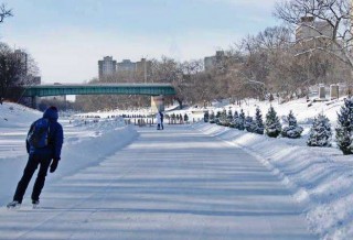 The Red River Mutual Trail at The Forks, offers visitors the chance to skate along the world's longest naturally frozen skating trail whilst taking in the sights of the city from both the frozen Red and Assiniboine Rivers.