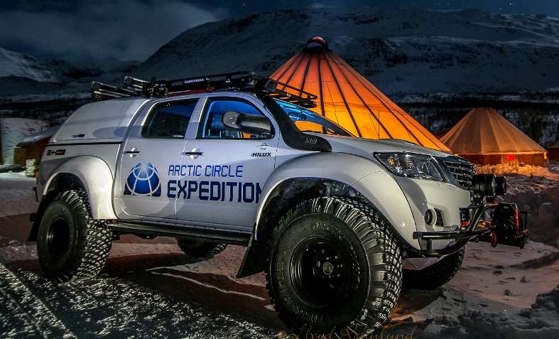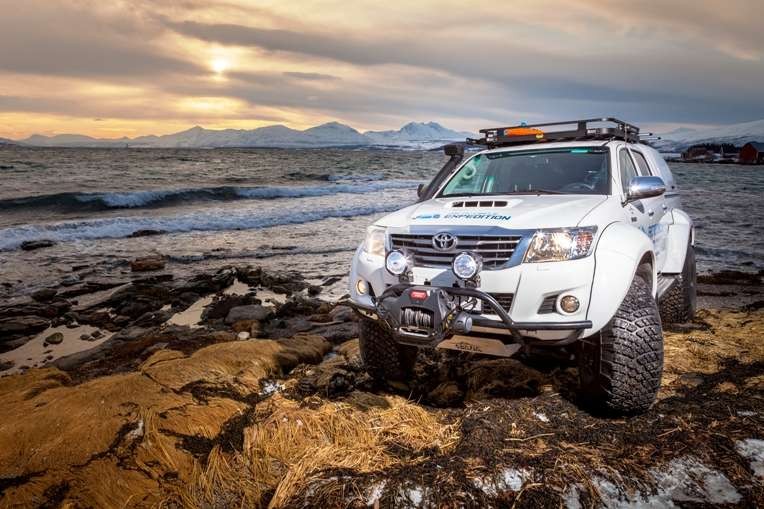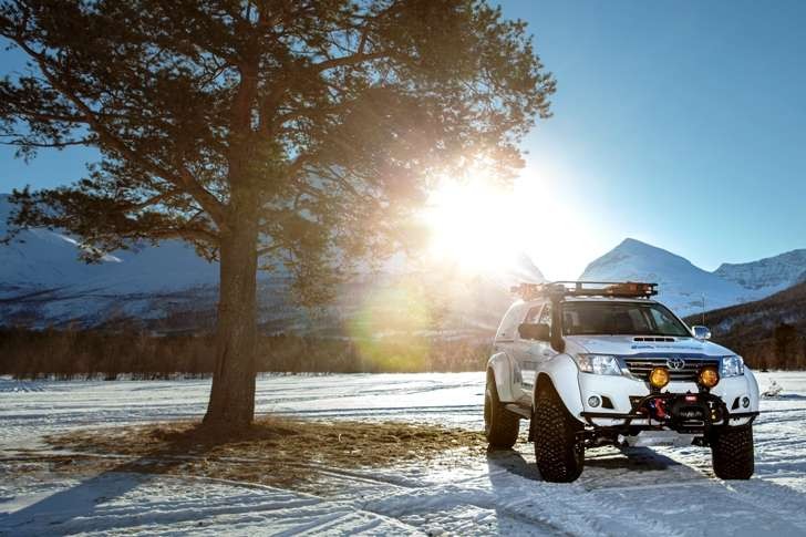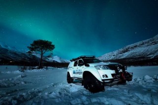 The expedition starts at the Camp Tamok wilderness center, off on the coast of Norway, and a first taste of off road driving across pristine snow and ice covered Arctic wilderness.
