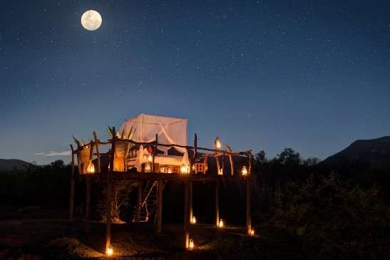 This raised three-tiered sleep-out deck offers the place to enjoy the African night sky, undisrupted by any city lights.