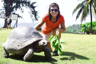 We're on tiny Curieuse, in the Seychelles' Inner Islands, where these tortoises roam, albeit slowly, in a national park.